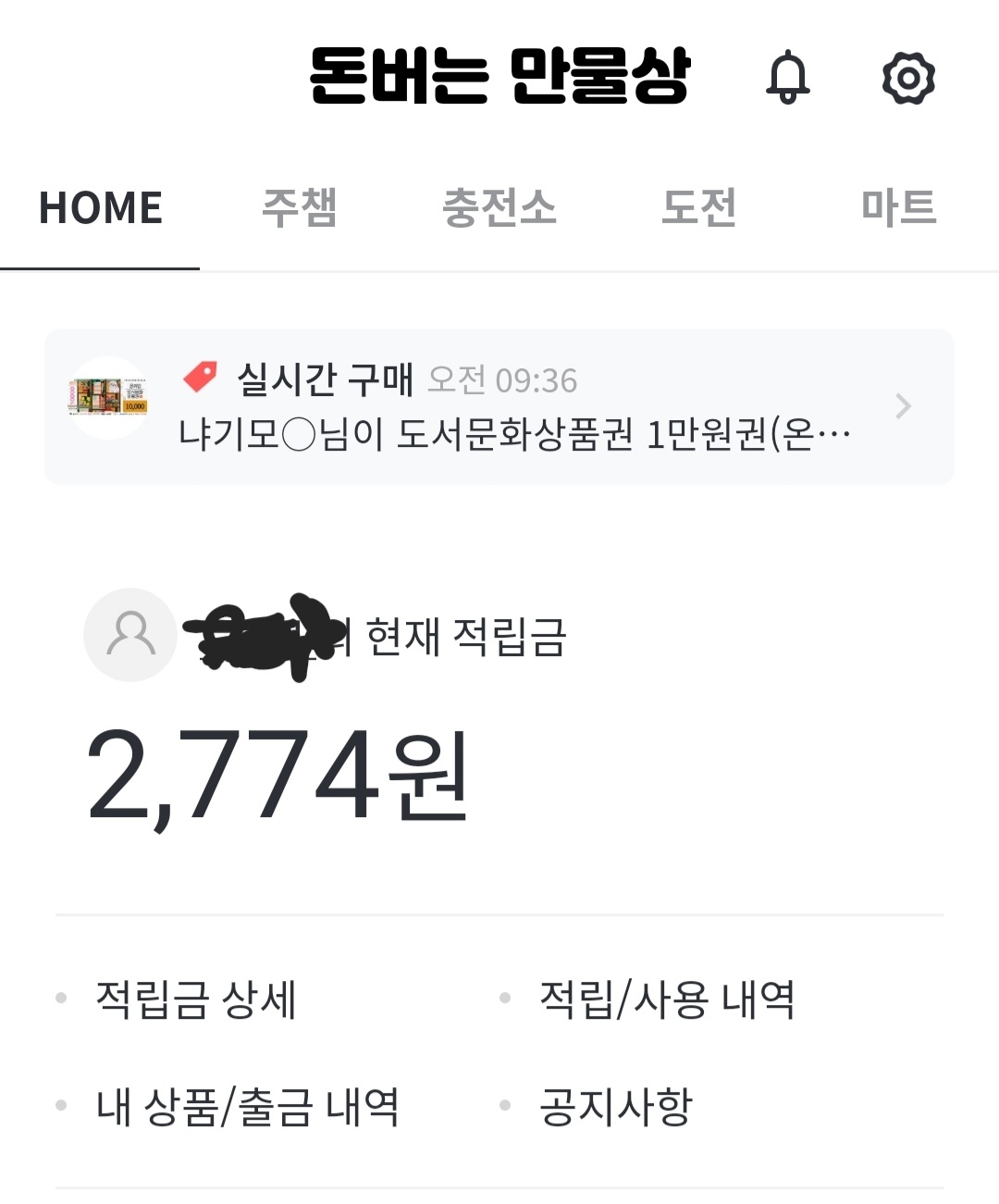 게다가 럭키타임이라고 매일매일 추첨을 통해 100원을 적립해줍니다. 아직 당첨 된 적은 없지만 응모할때마다 1원씩 적립해줍니다.