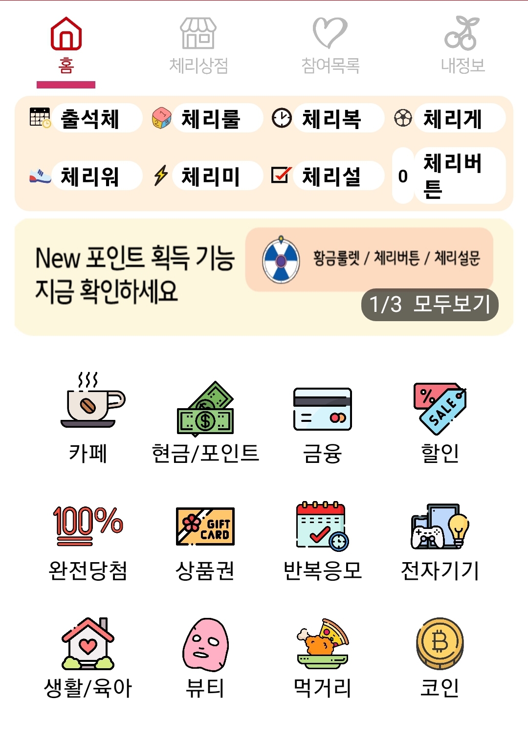 매일 매일 출석체크를 하고 체리를 받을 수 있습니다.