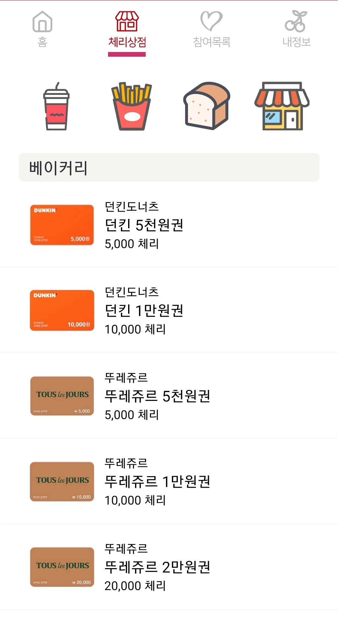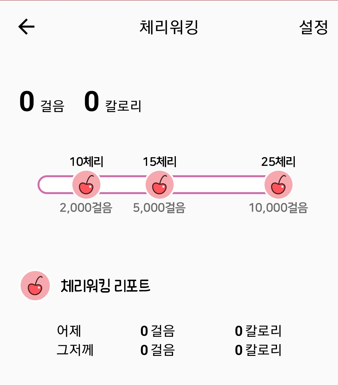 2,000걸음에 10체리, 5,000걸음에 15체리, 10,000걸음에 25체리를 받을 수 있습니다.