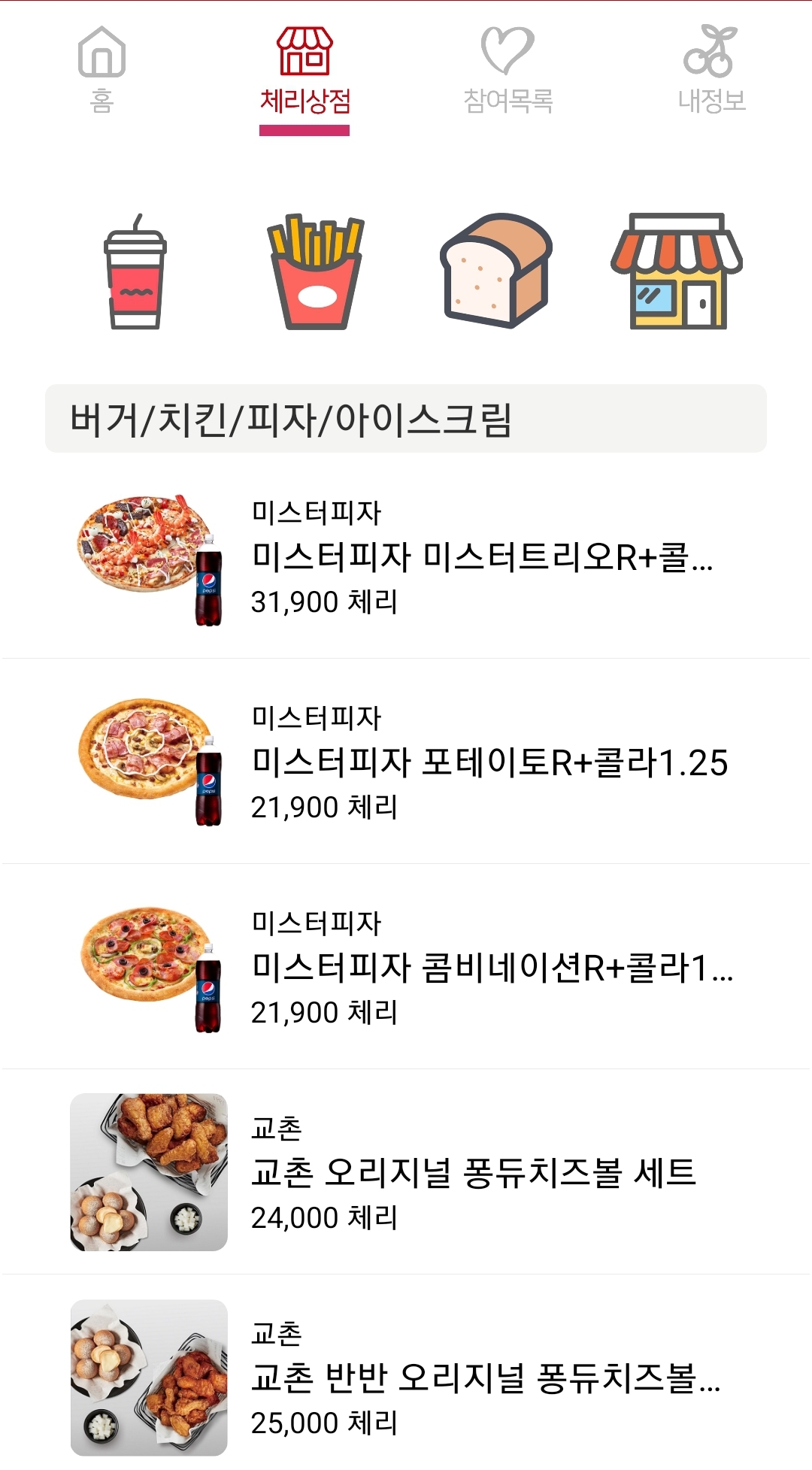 버거, 치킨, 피자로도 교환이 가능한데요.