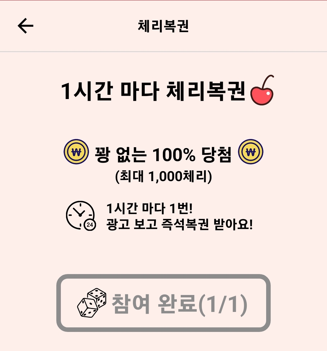최대 1,000체리까지 나온다고 하니 당첨되면 또 적어보도록 하겠습니다. ㅎㅎ