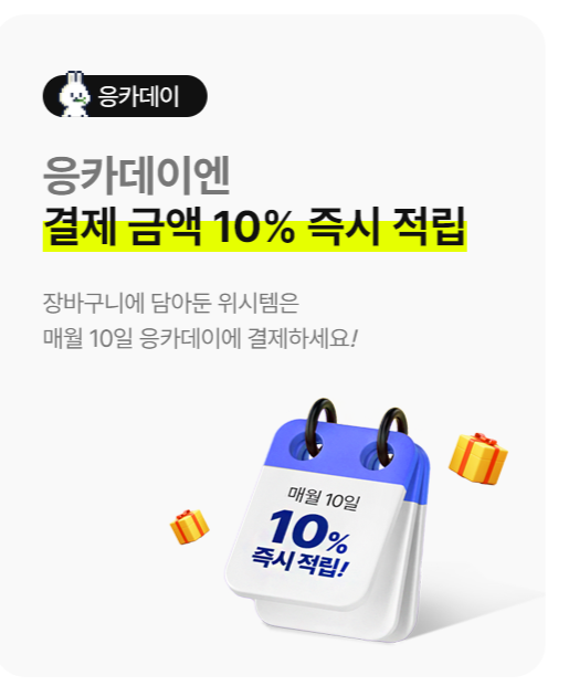 6. 매월 10일은 최대 10만원까지 결제건에 한하여 10% 즉시 적립(최대 만원)